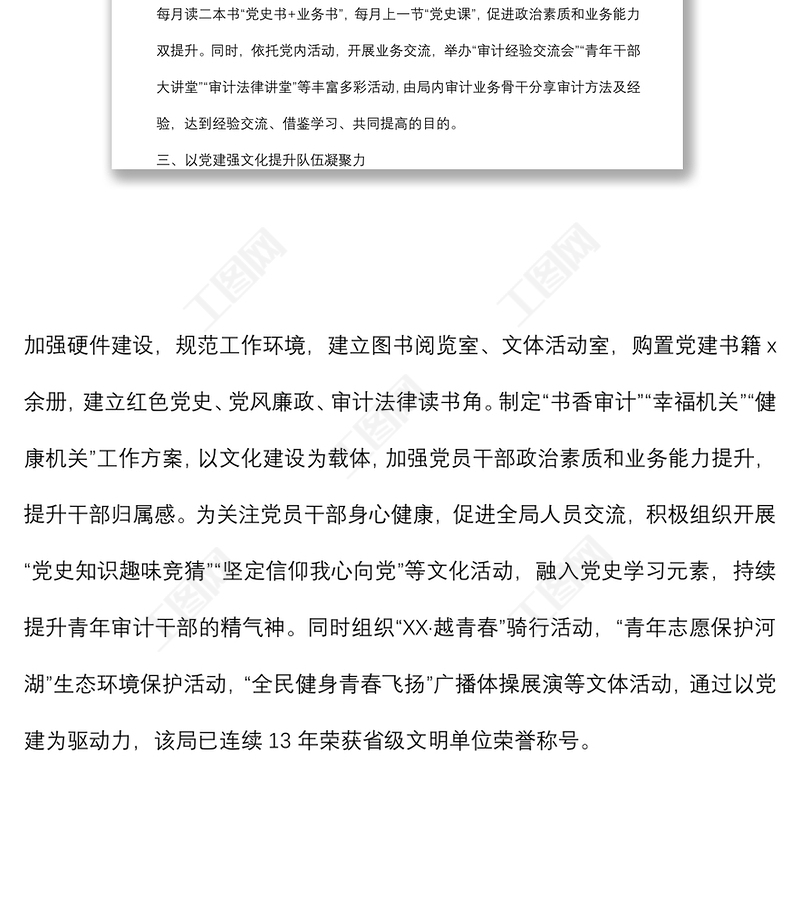 首頁 > WORD文檔 > 公文范文 > 黨建品牌創(chuàng)建工作材料:強(qiáng)化“五彩黨建”品牌引領(lǐng)提升隊伍戰(zhàn)斗力(區(qū)審計局).DOCX 【圖片、文字、動畫均可編輯】