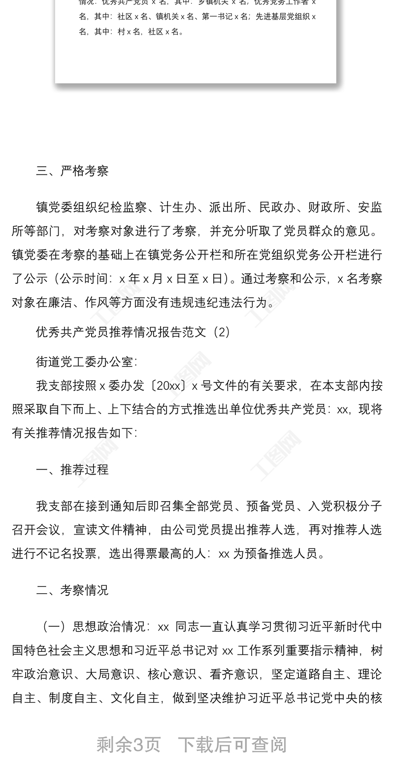 工圖網(wǎng)提供2021優(yōu)秀共產(chǎn)黨員優(yōu)秀黨務(wù)工作者先進(jìn)基層黨組織推薦情況報(bào)告范文3篇供會(huì)員免費(fèi)下載。更多精彩黨課PPT素材,盡在工圖網(wǎng)。