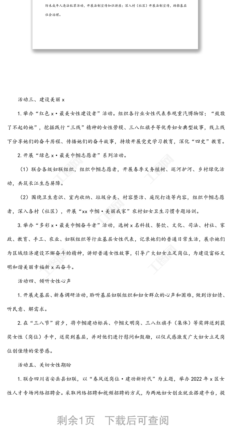 2022年“三八”婦女節(jié)活動方案(區(qū)縣),2022年“三八”婦女節(jié)活動方案(區(qū)縣) Array