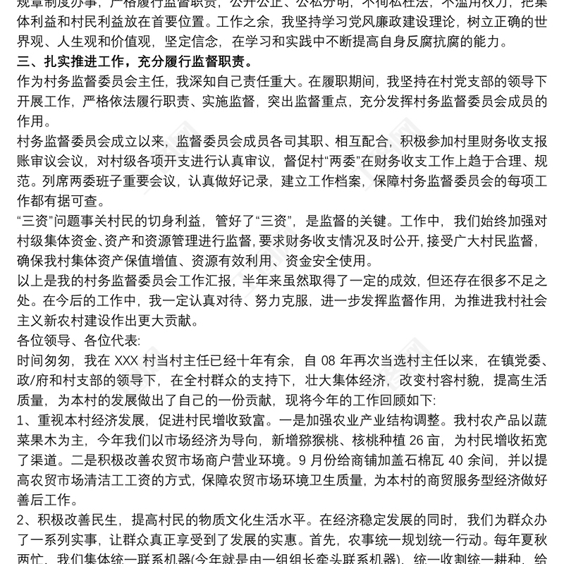 2019監(jiān)督委員會述職報告