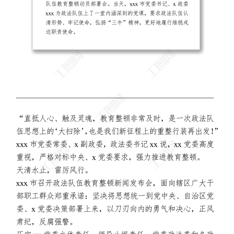 工圖網(wǎng)提供2021政法隊(duì)伍教育整頓第一階段工作綜述供會(huì)員免費(fèi)下載。更多精彩黨課PPT素材,盡在工圖網(wǎng)。