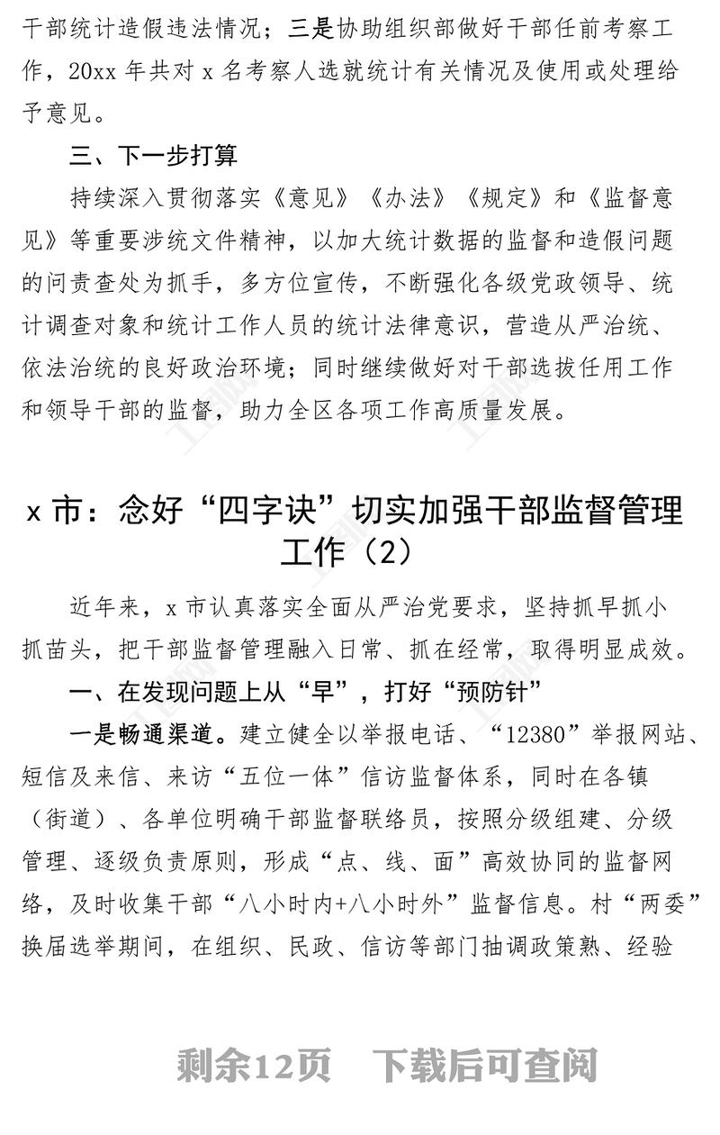 工圖網(wǎng)提供7篇干部監(jiān)督管理工作經(jīng)驗材料總結(jié)匯報報告供會員免費下載。更多精彩黨課PPT素材,盡在工圖網(wǎng)。