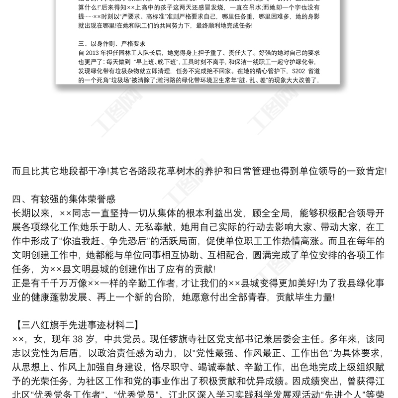 工圖網(wǎng)提供三八紅旗手個(gè)人先進(jìn)工作者事跡材料供會(huì)員免費(fèi)下載。更多精彩黨課PPT素材,盡在工圖網(wǎng)。