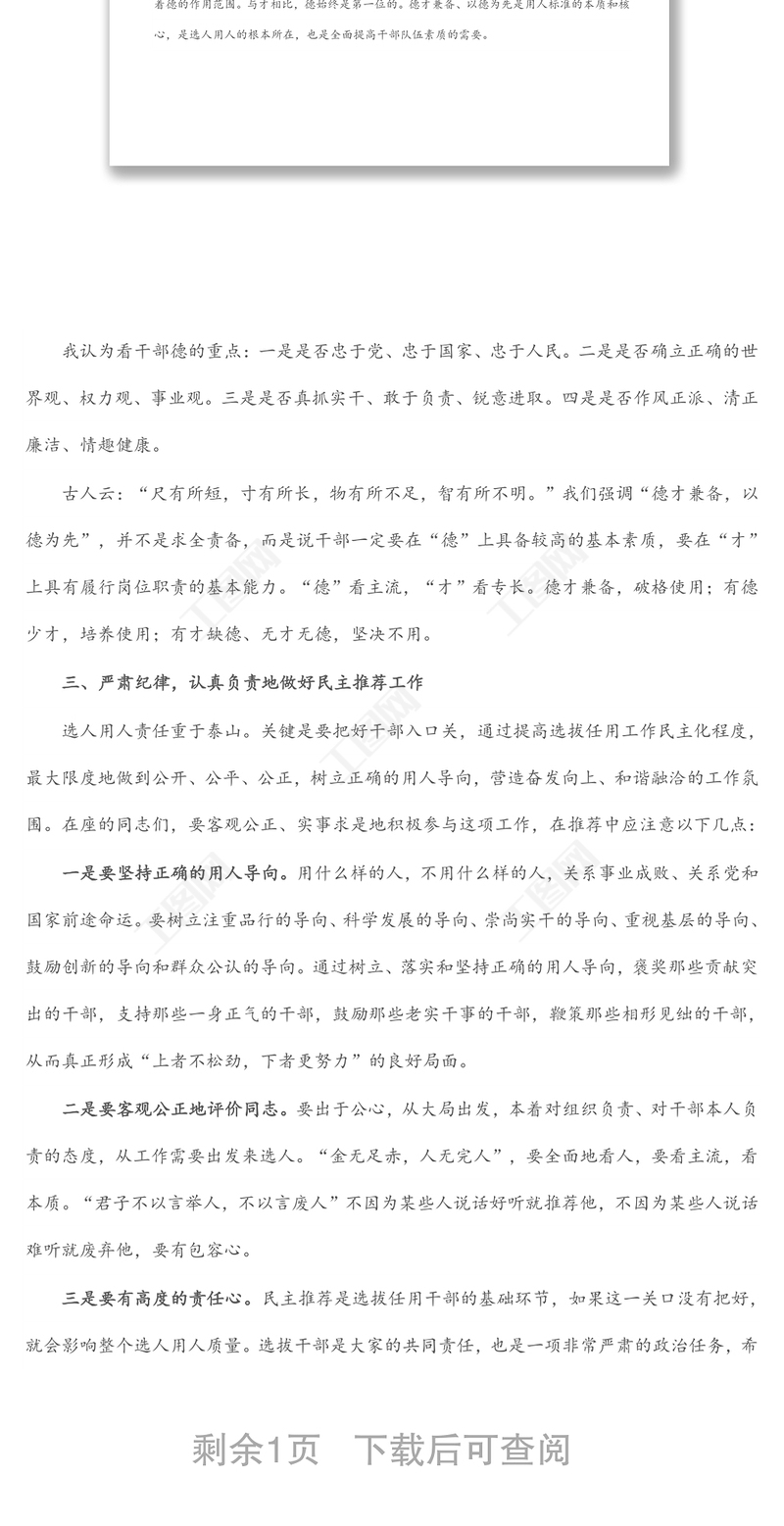 在干部提拔民主推薦會上的動員講話