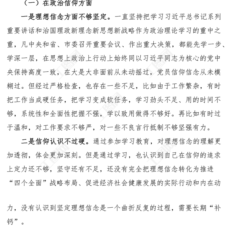 XX單位組織生活會(huì)個(gè)人對(duì)照檢查材料范文學(xué)習(xí)思想擔(dān)當(dāng)作為全面從嚴(yán)治黨等方面檢視剖析材料發(fā)言提綱包含