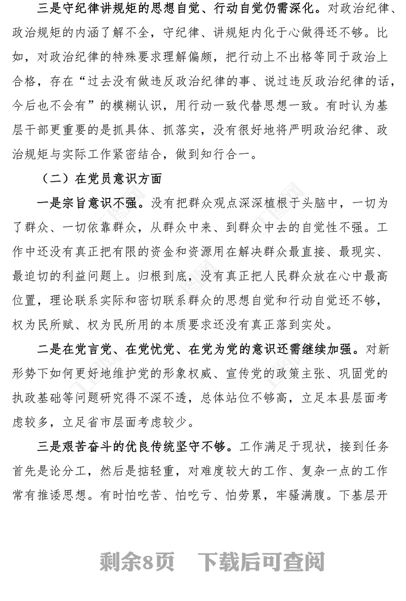 2023年初信仰黨員意識(shí)理論學(xué)習(xí)能力本領(lǐng)作用發(fā)揮紀(jì)律作風(fēng)等六個(gè)方面檢視剖析材料發(fā)言提綱(金融系統(tǒng)工作人員)包含