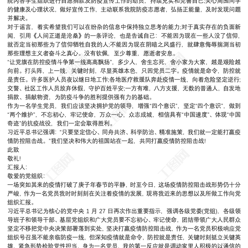 工圖網(wǎng)提供20xx年入黨積極分子疫情防控期間思想?yún)R報三篇 20xx年疫情期間入黨積極分子思想?yún)R報供會員免費(fèi)下載。更多精彩黨課PPT素材,盡在工圖網(wǎng)。