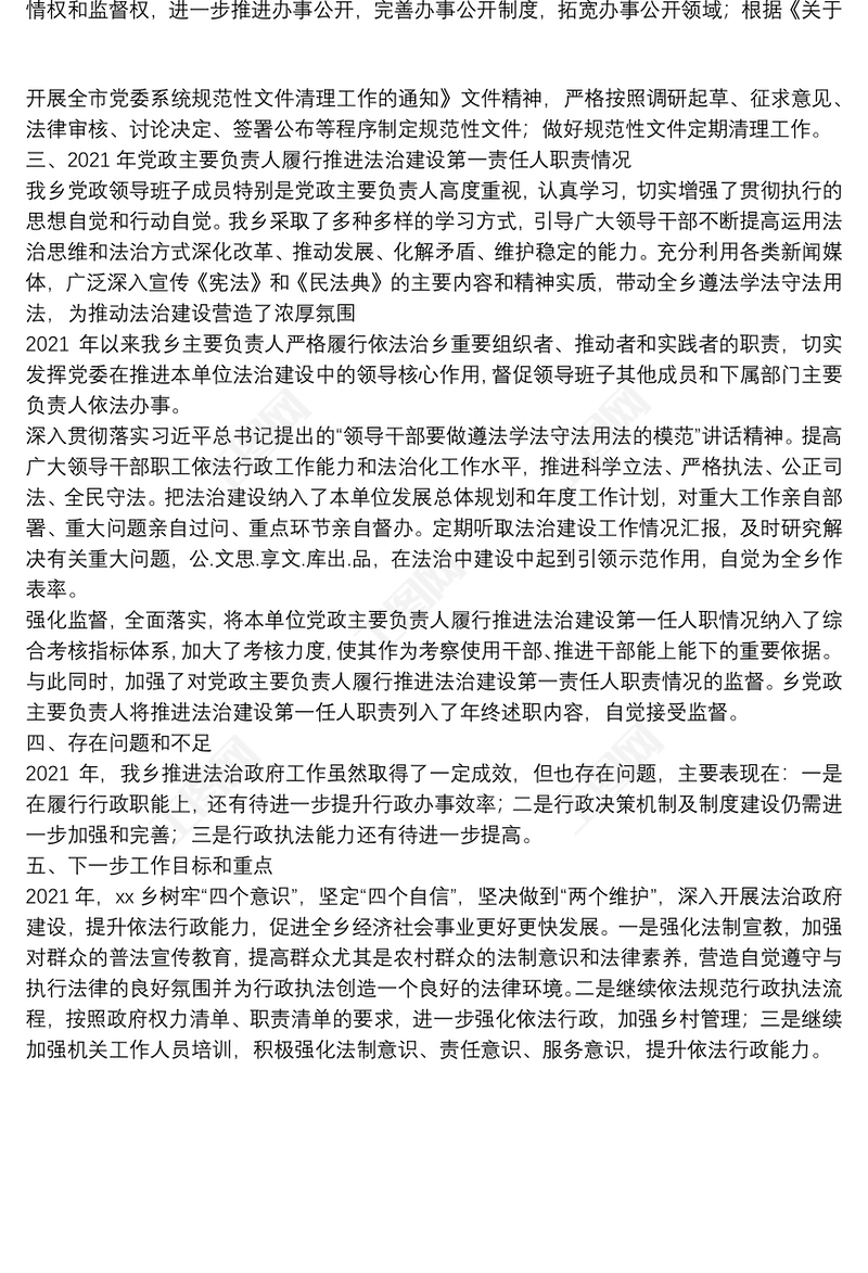 2021年度XX鄉(xiāng)法治政府建設(shè)情況工作報告 Array
