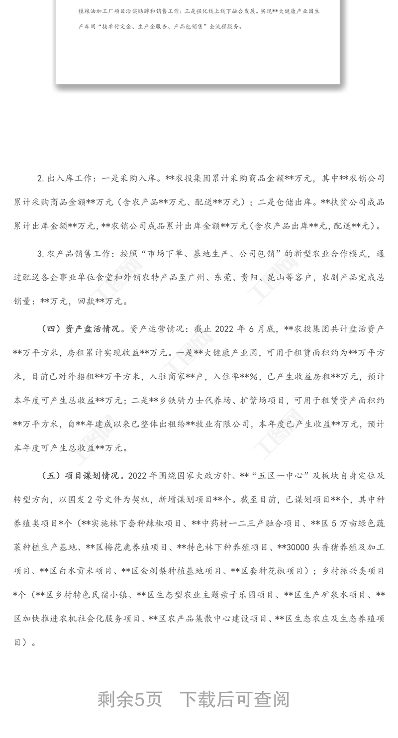 > 計(jì)劃方案 > 農(nóng)業(yè)投資集團(tuán)2022年上半年工作總結(jié)及下半年工作計(jì)劃.DOCX 【圖片、文字、動(dòng)畫(huà)均可編輯】
