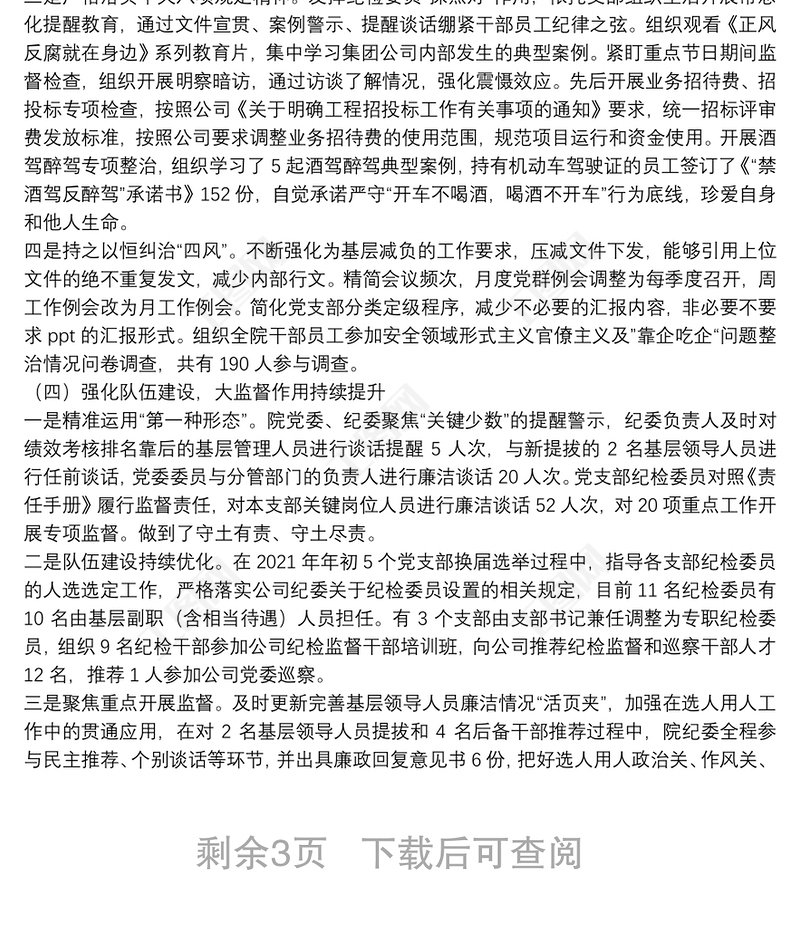 2021年黨風廉政建設(shè)黨課講稿及講稿2022年黨風廉政建設(shè)警示教育材料銀行黨風廉政建設(shè)黨課講稿2022年全面從嚴治黨黨風廉政建設(shè)工作總結(jié)2022幼兒園黨風廉政建設(shè)黨課講稿2023年黨風廉政建設(shè)黨課講稿2021年下半年黨風廉政建設(shè)兩個責任分級約談?wù)勗拑?nèi)容2022黨風廉政建設(shè)黨課講稿2022年黨風廉政建設(shè)工作會議上的報告基層黨風廉政建設(shè)黨課講稿2022年黨風廉政建設(shè)和反腐倡廉黨委書記講話稿2022年黨風廉政建設(shè)工作會上的報告醫(yī)院2021年黨風廉政建設(shè)工作總結(jié)2021黨史學(xué)習(xí)教育及加強黨風廉政建設(shè)黨課制定下發(fā)2022年黨風廉政建設(shè)工作要點和全面從嚴治黨責任清單與各科室負2022關(guān)于上半年黨風廉政建設(shè)工作情況的通報