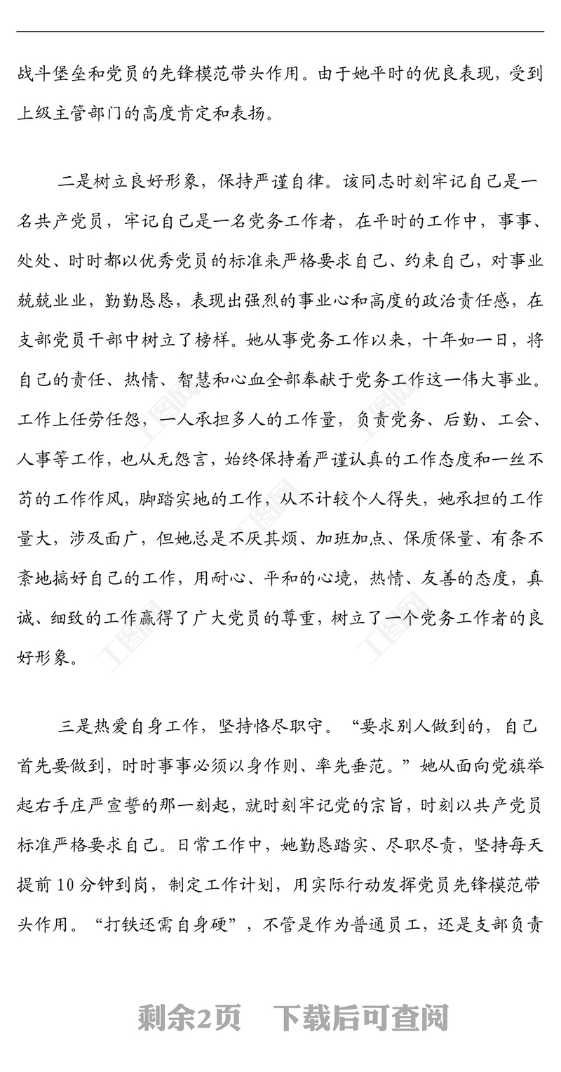 工圖網(wǎng)提供黨務(wù)工作者優(yōu)秀黨員先進(jìn)事跡材料供會(huì)員免費(fèi)下載。更多精彩黨課PPT素材,盡在工圖網(wǎng)。