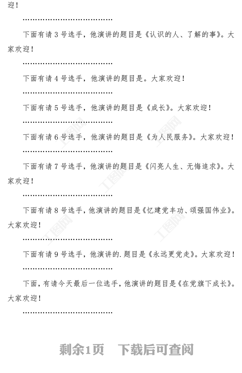 工圖網(wǎng)提供演講比賽主持詞學(xué)黨史知黨情跟黨走100周年演講比賽主持詞范文主持人串詞七一建黨節(jié)黨史學(xué)習(xí)教育素材供會(huì)員免費(fèi)下載。更多精彩黨課PPT素材,盡在工圖網(wǎng)。