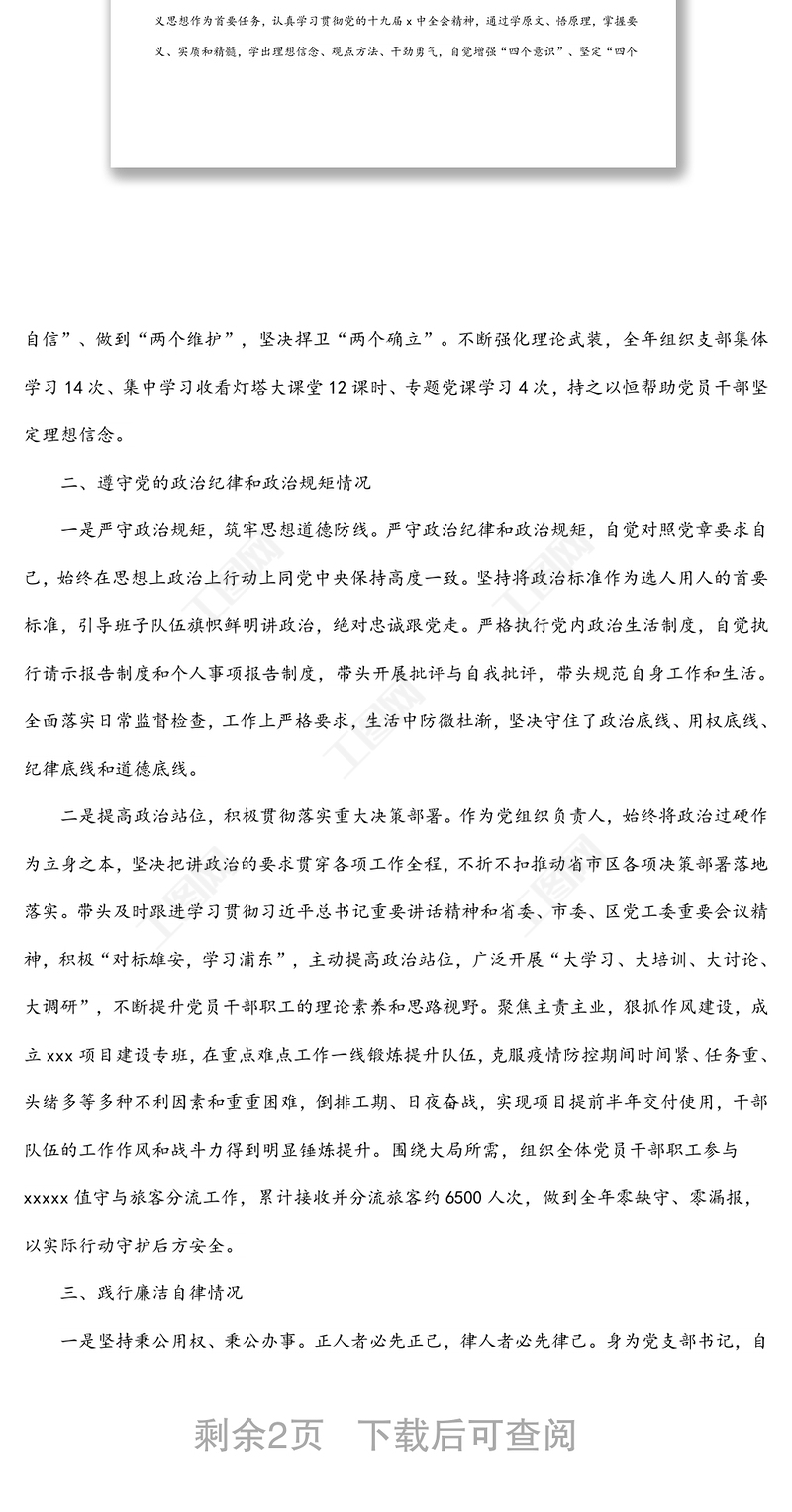 工圖網(wǎng)提供公司黨支部書記履行全面從嚴(yán)治黨主體責(zé)任和廉潔自律情況報(bào)告供會(huì)員免費(fèi)下載。更多精彩黨課PPT素材,盡在工圖網(wǎng)。