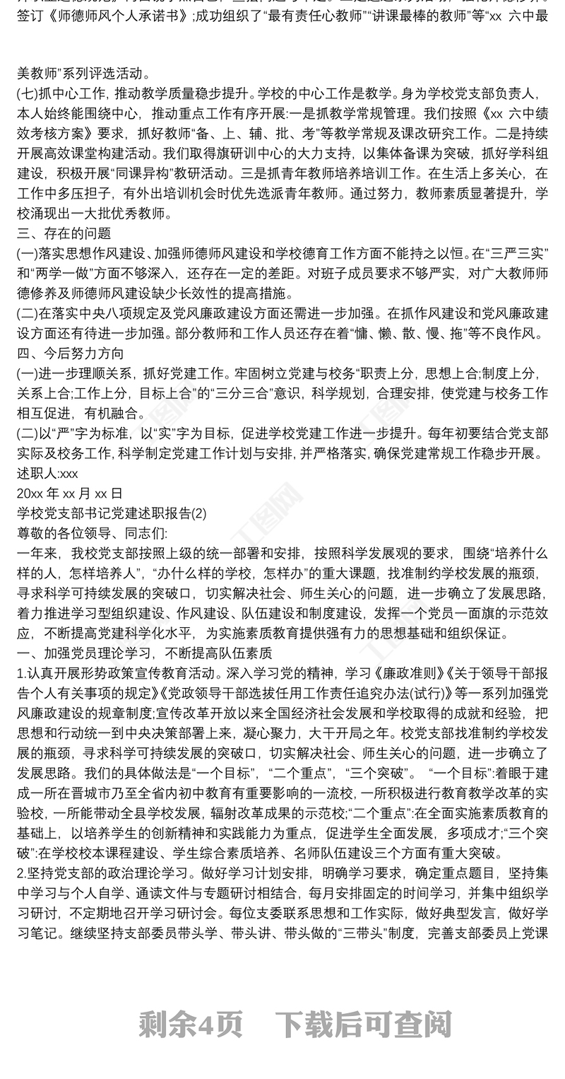 工圖網(wǎng)提供2020學(xué)校黨支部書記黨建述職報告供會員免費下載。更多精彩黨課PPT素材,盡在工圖網(wǎng)。
