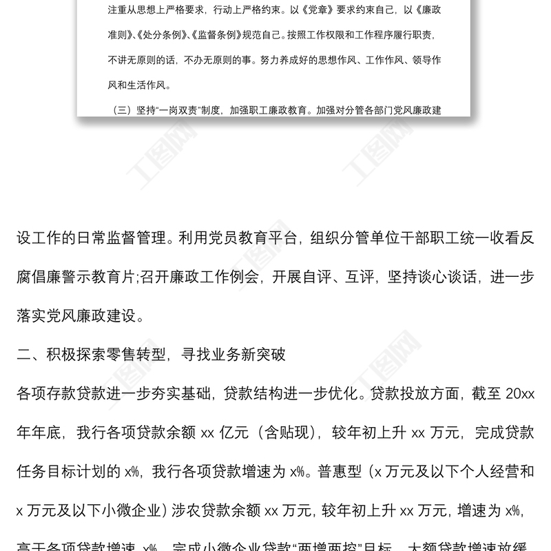 工圖網(wǎng)提供銀行領(lǐng)導(dǎo)“一崗雙責(zé)”履職情況匯報(bào)供會(huì)員免費(fèi)下載。更多精彩黨課PPT素材,盡在工圖網(wǎng)。