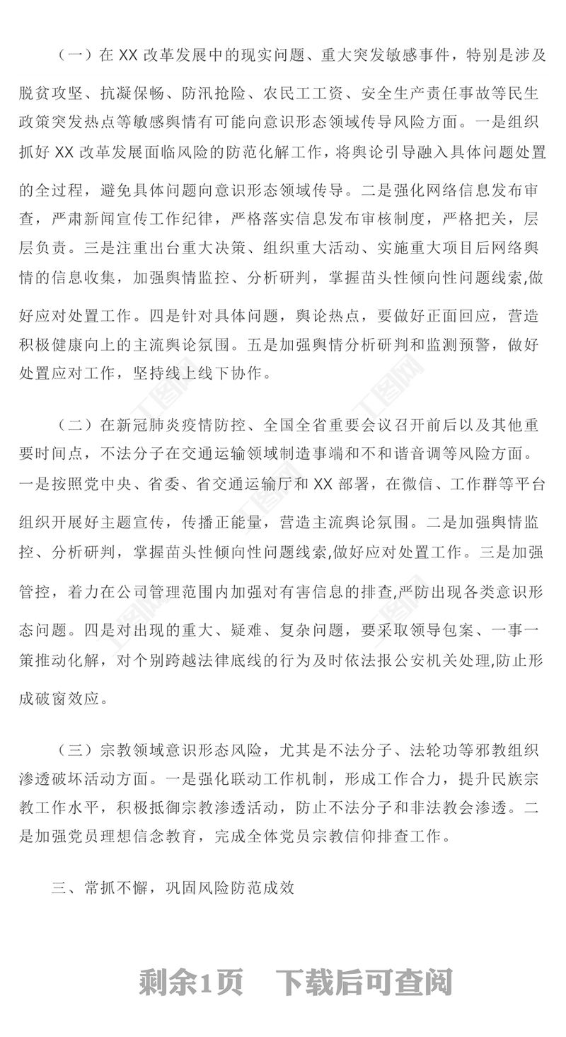 2022教育系統(tǒng)意識(shí)形態(tài)領(lǐng)域風(fēng)險(xiǎn)點(diǎn)排查清單2022意識(shí)形態(tài)輿情風(fēng)險(xiǎn)點(diǎn)及防控措施2022安全生產(chǎn)意識(shí)形態(tài)風(fēng)險(xiǎn)點(diǎn)及措施2022意識(shí)形態(tài)風(fēng)險(xiǎn)點(diǎn)排查清單2022醫(yī)療系統(tǒng)意識(shí)形態(tài)風(fēng)險(xiǎn)點(diǎn)及防控措施2022意識(shí)形態(tài)領(lǐng)域風(fēng)險(xiǎn)點(diǎn)排查清單2022意識(shí)形態(tài)領(lǐng)域風(fēng)險(xiǎn)排查及防控措施一覽表2022第三季度意識(shí)形態(tài)風(fēng)險(xiǎn)點(diǎn)分析研判評(píng)估報(bào)告2022護(hù)士個(gè)人意識(shí)形態(tài)風(fēng)險(xiǎn)點(diǎn)及措施2022兩會(huì)期間意識(shí)形態(tài)風(fēng)險(xiǎn)點(diǎn)提示2022意識(shí)形態(tài) 風(fēng)險(xiǎn)點(diǎn)防控工作方案2022意識(shí)形態(tài)工作風(fēng)險(xiǎn)點(diǎn)排查方案2022綜治維穩(wěn)意識(shí)形態(tài)工作匯報(bào)2022意識(shí)形態(tài)領(lǐng)域風(fēng)險(xiǎn)點(diǎn)排查問題清單2022文化部門意識(shí)形態(tài)存在的風(fēng)險(xiǎn)點(diǎn)及防控措施