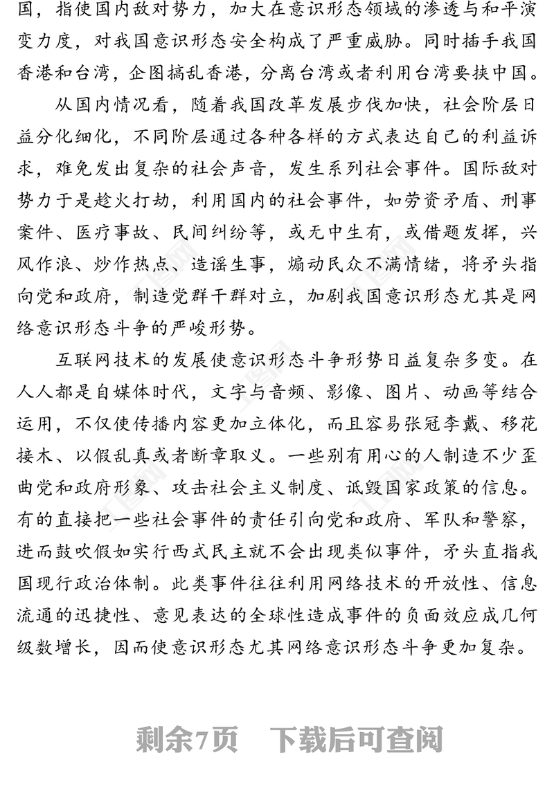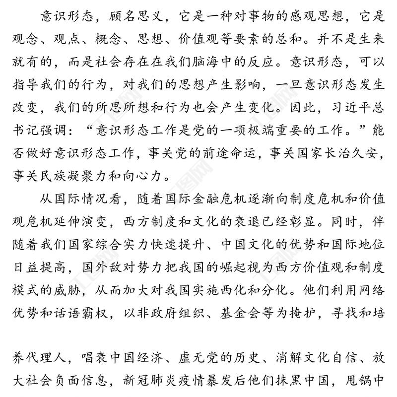 2022關(guān)于意識形態(tài)工作的重要論述發(fā)言稿醫(yī)院總務(wù)科意識形態(tài)研討發(fā)言稿2022網(wǎng)絡(luò)意識形態(tài)存在的風(fēng)險(xiǎn)點(diǎn)及措施公安局意識形態(tài)發(fā)言材料2022融媒體中心意識形態(tài)領(lǐng)域存在的問題2022年意識形態(tài)個(gè)人研討發(fā)言材料2021意識形態(tài)民主生活會的發(fā)言材料統(tǒng)戰(zhàn)部工作意識形態(tài)發(fā)言2021教師意識形態(tài)領(lǐng)域?qū)n}研討發(fā)言稿2022辦公室意識形態(tài)領(lǐng)域形式分析研判材料2021網(wǎng)絡(luò)意識形態(tài)研判會發(fā)言稿村級意識形態(tài)發(fā)言材料2022文化部門意識形態(tài)存在的風(fēng)險(xiǎn)點(diǎn)及防控措施社區(qū)2021年上半年意識形態(tài)工作總結(jié)2022保衛(wèi)科可能存在的意識形態(tài)風(fēng)險(xiǎn)點(diǎn)