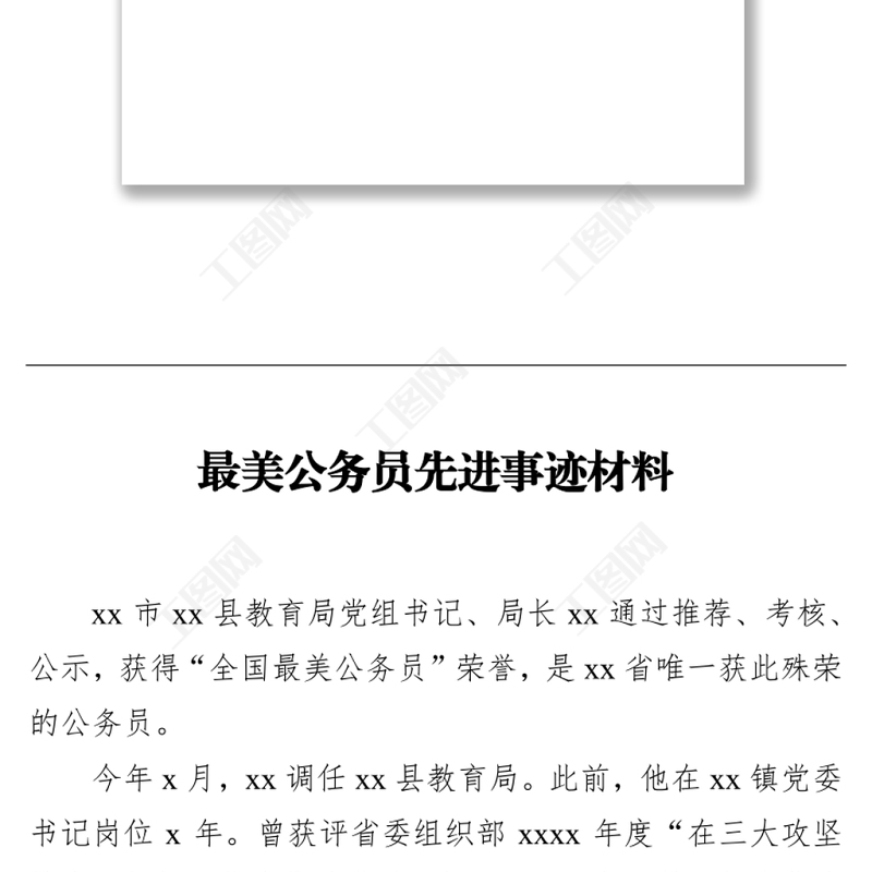 工圖網(wǎng)提供學(xué)習(xí)最美公務(wù)員先進(jìn)事跡材料心得體會(huì)匯編(4篇)供會(huì)員免費(fèi)下載。更多精彩黨課PPT素材,盡在工圖網(wǎng)。