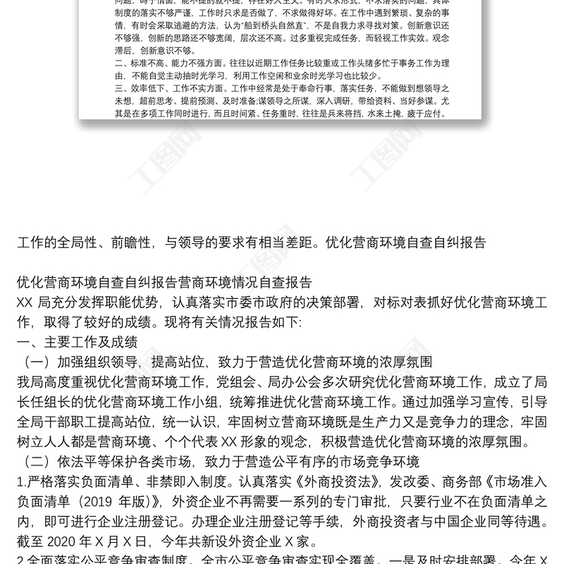 優(yōu)化營(yíng)商環(huán)境自查自糾報(bào)告營(yíng)商環(huán)境情況自查報(bào)告
