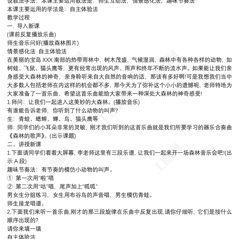 小學(xué)音樂欣賞課說課稿