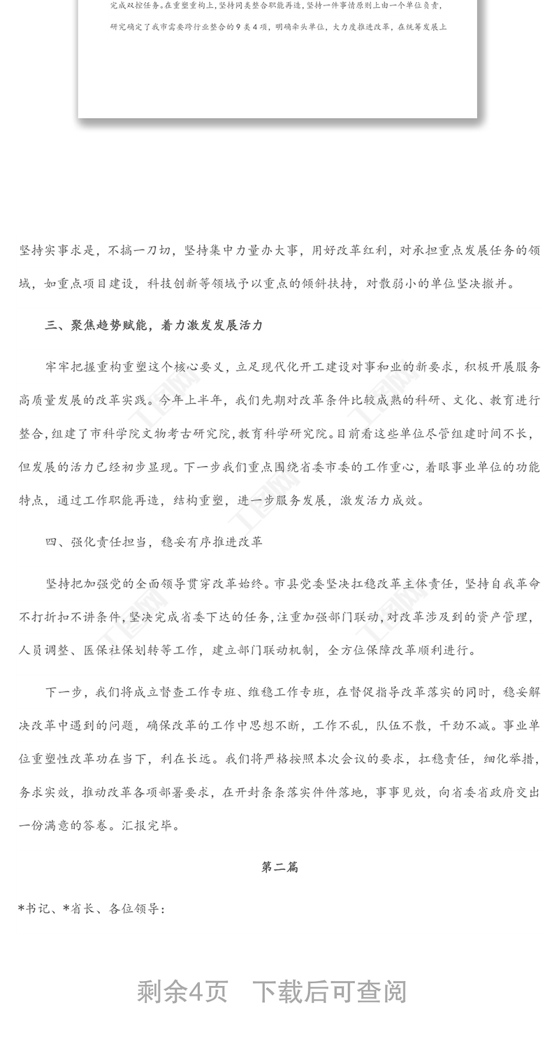 工圖網(wǎng)提供在全省事業(yè)單位重塑性改革經(jīng)驗(yàn)交流會(huì)上的發(fā)言匯編(3篇)供會(huì)員免費(fèi)下載。更多精彩黨課PPT素材,盡在工圖網(wǎng)。