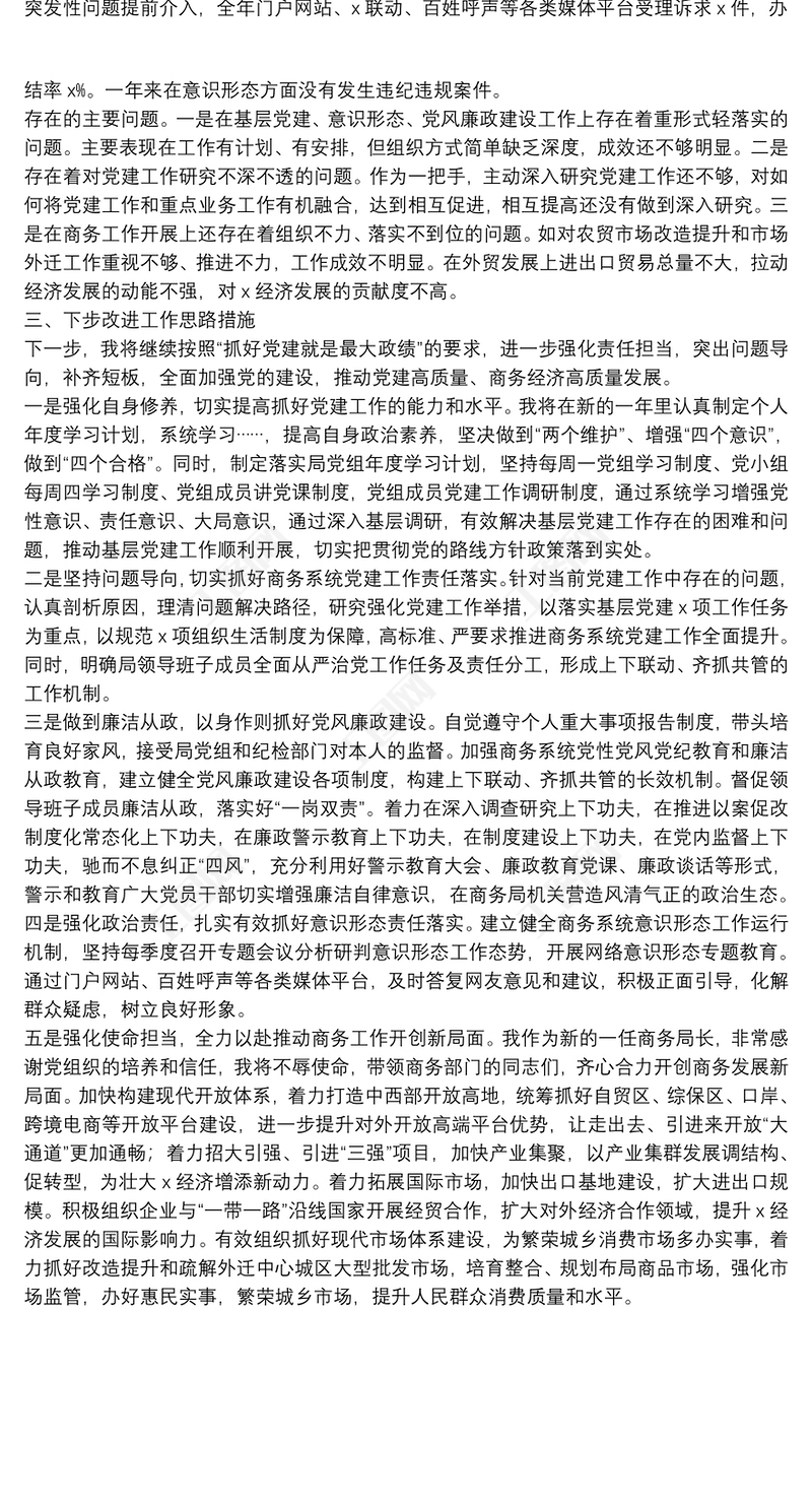 市商務(wù)局黨組書記、局長落實黨建工作責(zé)任制述職報告述 職 述 廉 報 告 Array
