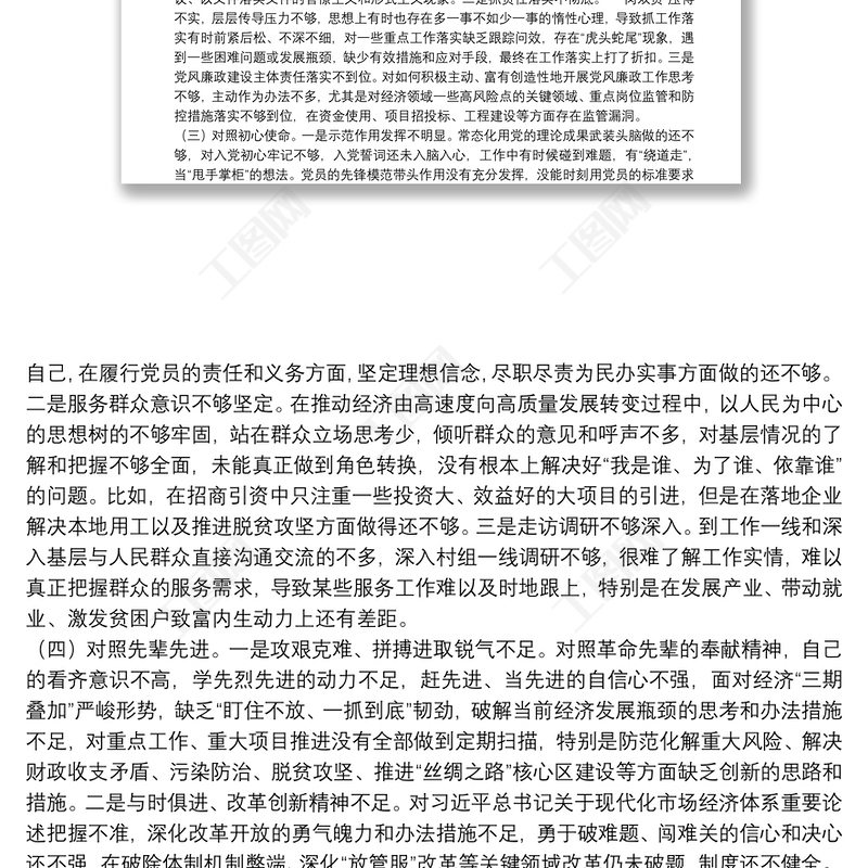 工圖網(wǎng)提供黨員干部黨史學習教育專題組織生活會“四個方面”個人對照檢查材料供會員免費下載。更多精彩黨課PPT素材,盡在工圖網(wǎng)。