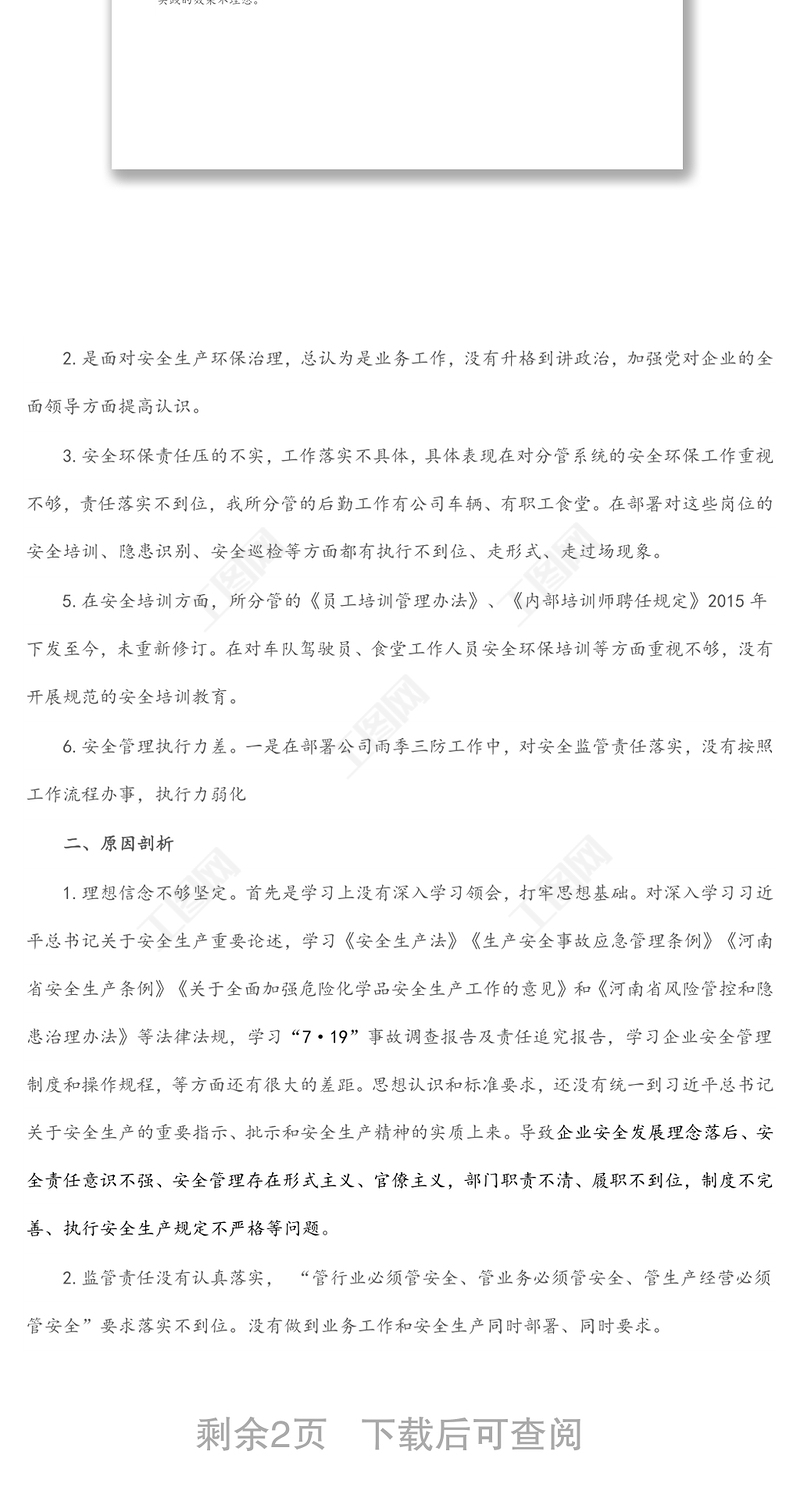 工圖網提供國企行政總監(jiān)安全生產以案促改專題民主生活會個人發(fā)言提綱供會員免費下載。更多精彩黨課PPT素材,盡在工圖網。