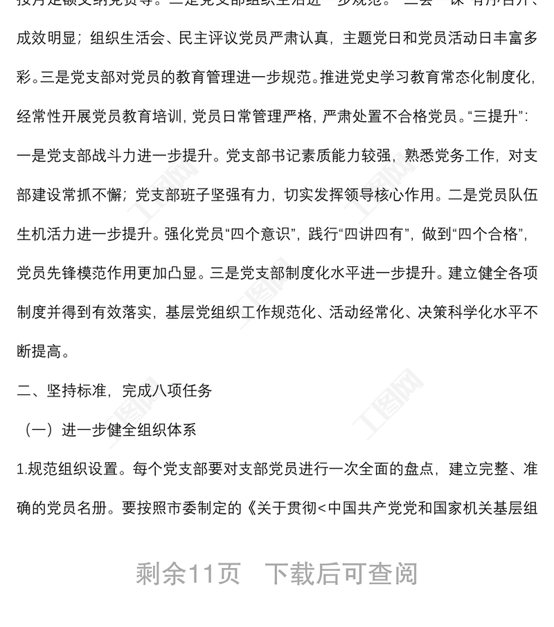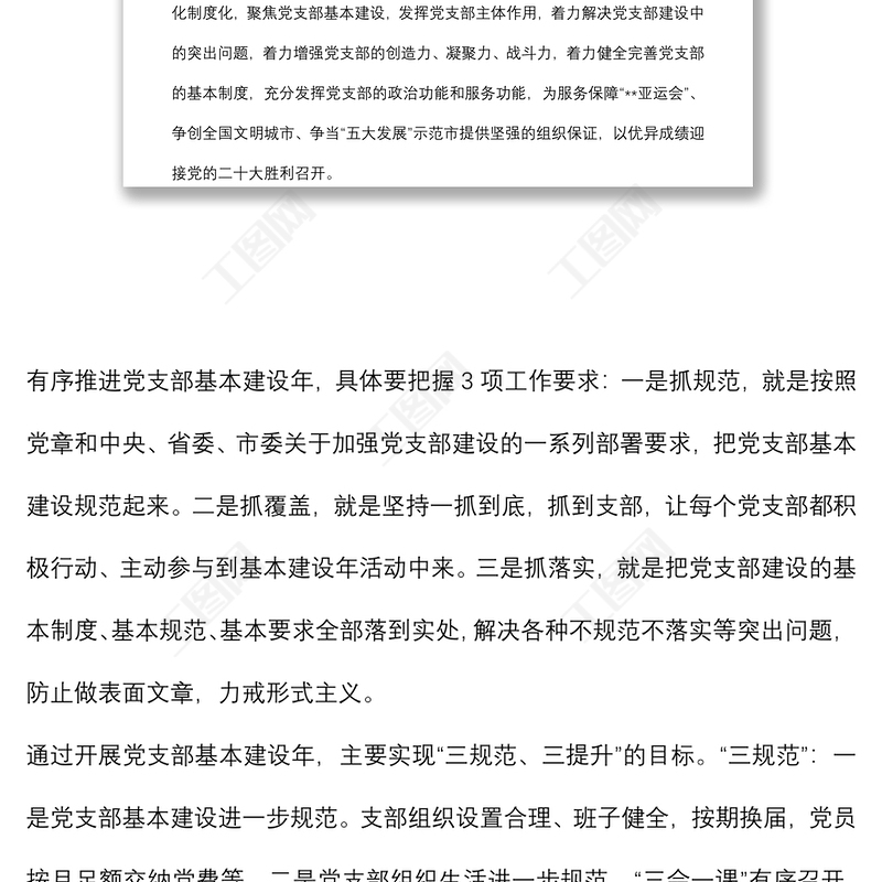 工圖網(wǎng)提供關(guān)于開展黨支部基本建設(shè)年的工作方案供會員免費下載。更多精彩黨課PPT素材,盡在工圖網(wǎng)。
