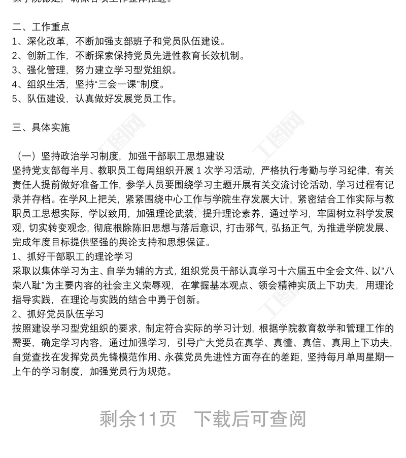 工圖網(wǎng)提供黨支部年度工作計劃范文范本供會員免費下載。更多精彩黨課PPT素材,盡在工圖網(wǎng)。
