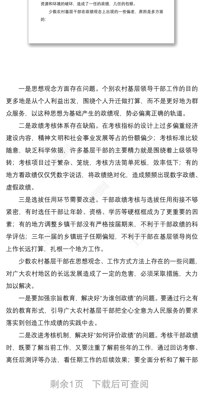 【政績觀調(diào)研報告】農(nóng)村基層干部政績觀偏差的觀察與思考(存在問題、原因及解決措施) Array