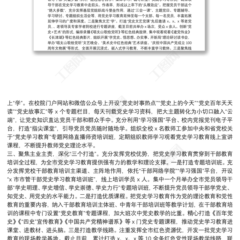 工圖網(wǎng)提供市委黨校(行政學(xué)院)黨史學(xué)習(xí)教育開展情況總結(jié)供會員免費(fèi)下載。更多精彩黨課PPT素材,盡在工圖網(wǎng)。