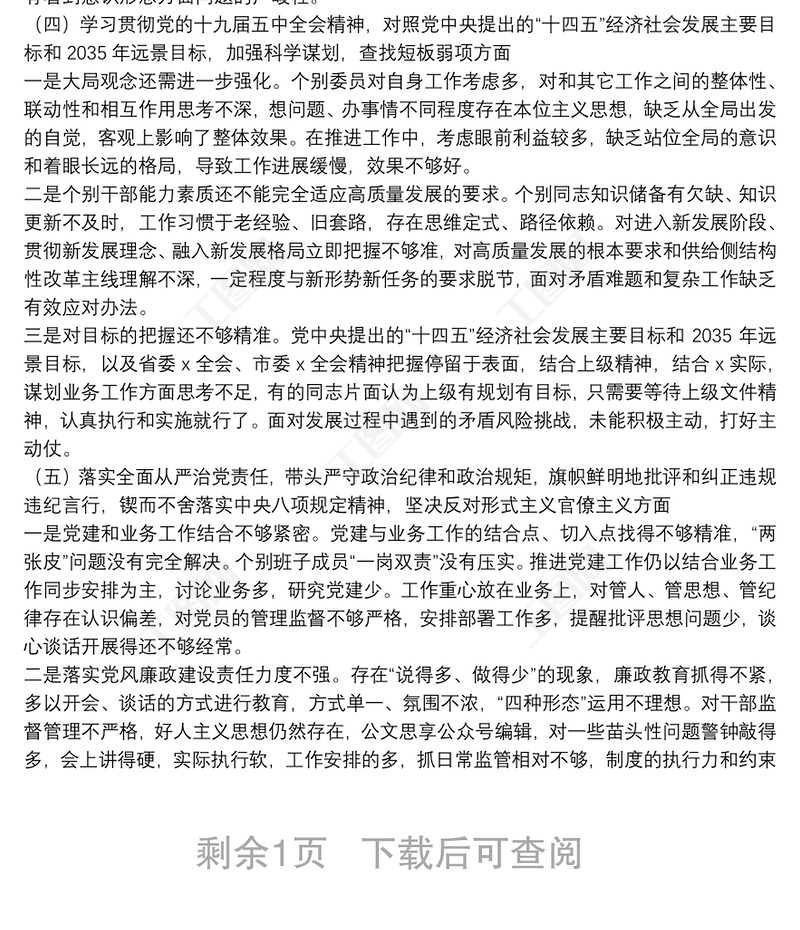 2021以案促改專(zhuān)題組織生活會(huì)個(gè)人對(duì)照檢查材料2021年村黨組織生活會(huì)個(gè)人對(duì)照檢查材料學(xué)校2022年度基層黨支部組織生活會(huì)班子對(duì)照檢查材料2021年黨史學(xué)習(xí)教育暨巡察整改專(zhuān)題組織生活會(huì)班子對(duì)照檢查材料2021農(nóng)村基層黨組織生活會(huì)個(gè)人對(duì)照檢查材料2021年組織生活會(huì)個(gè)人對(duì)照檢查材料教師2022年紀(jì)檢監(jiān)察干部組織生活會(huì)個(gè)人對(duì)照檢查材料2021律師組織生活會(huì)個(gè)人對(duì)照檢查材料醫(yī)生組織生活會(huì)個(gè)人對(duì)照檢查材料2021年2021年學(xué)校組織生活會(huì)班子對(duì)照檢查材料2021組織生活會(huì)個(gè)人對(duì)照檢查材料西藏2021衛(wèi)生院組織生活會(huì)班子對(duì)照檢查材料2021民主生活會(huì)學(xué)校黨支部班子對(duì)照檢查材料2021工會(huì)民主生活會(huì)個(gè)人對(duì)照檢查材料2021郭文革案件專(zhuān)題組織生活會(huì)班子對(duì)照檢查材料2023黨支部班子新時(shí)代中國(guó)特色社會(huì)主義思想對(duì)照檢查材料