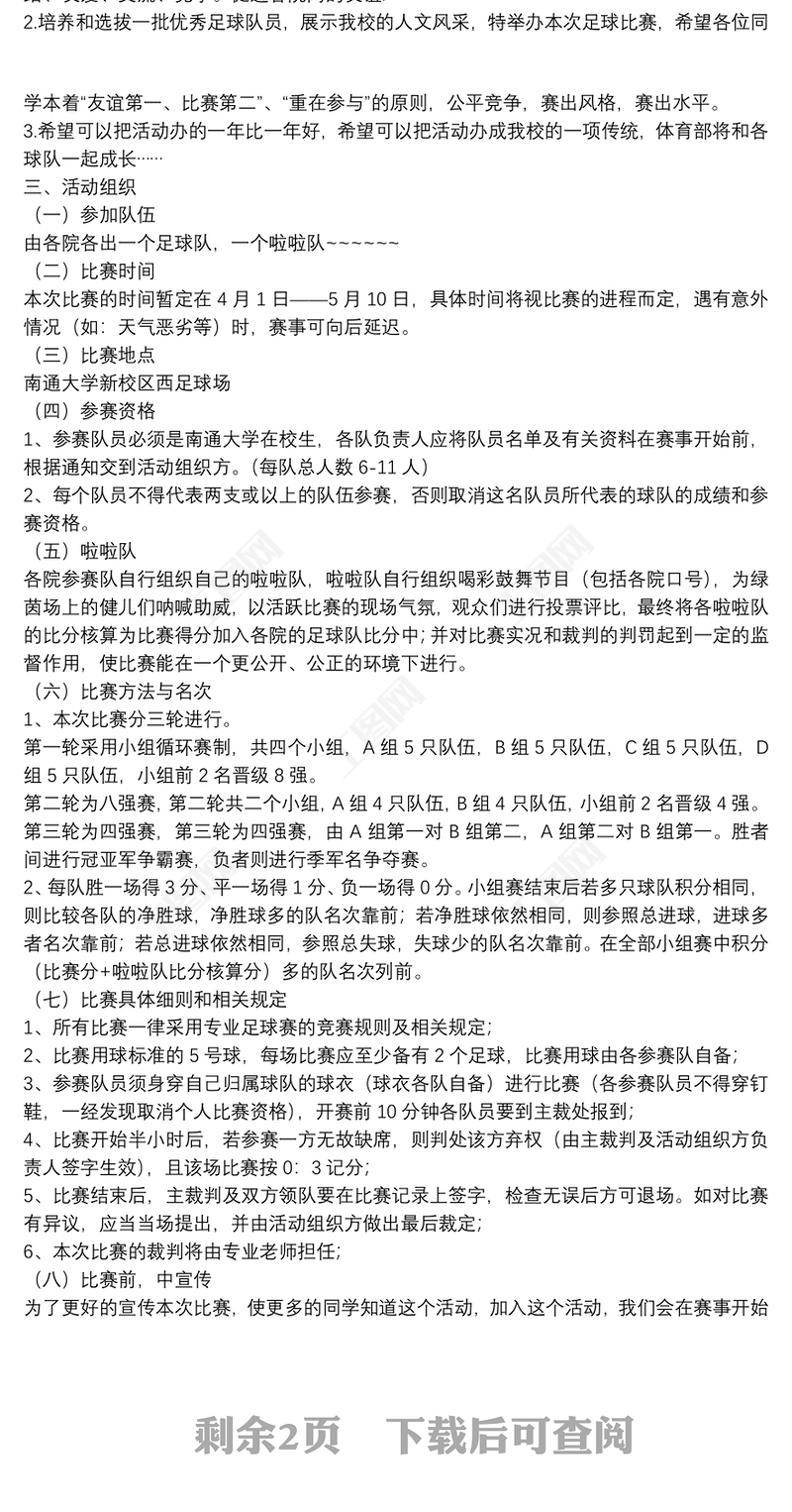 首頁(yè) > WORD文檔 > 計(jì)劃方案 > 足球賽活動(dòng)策劃方案模板.DOCX 【圖片、文字、動(dòng)畫(huà)均可編輯】