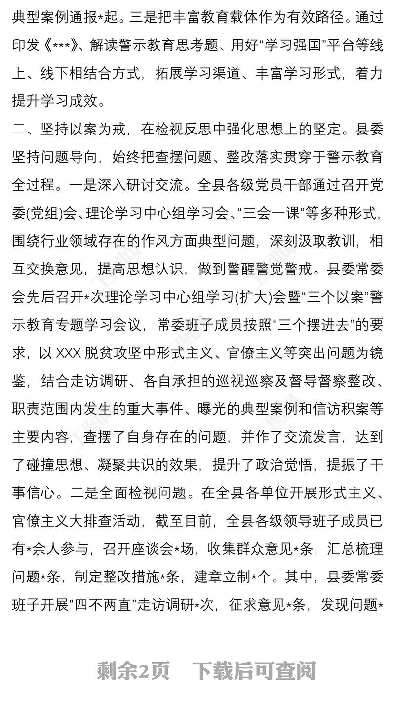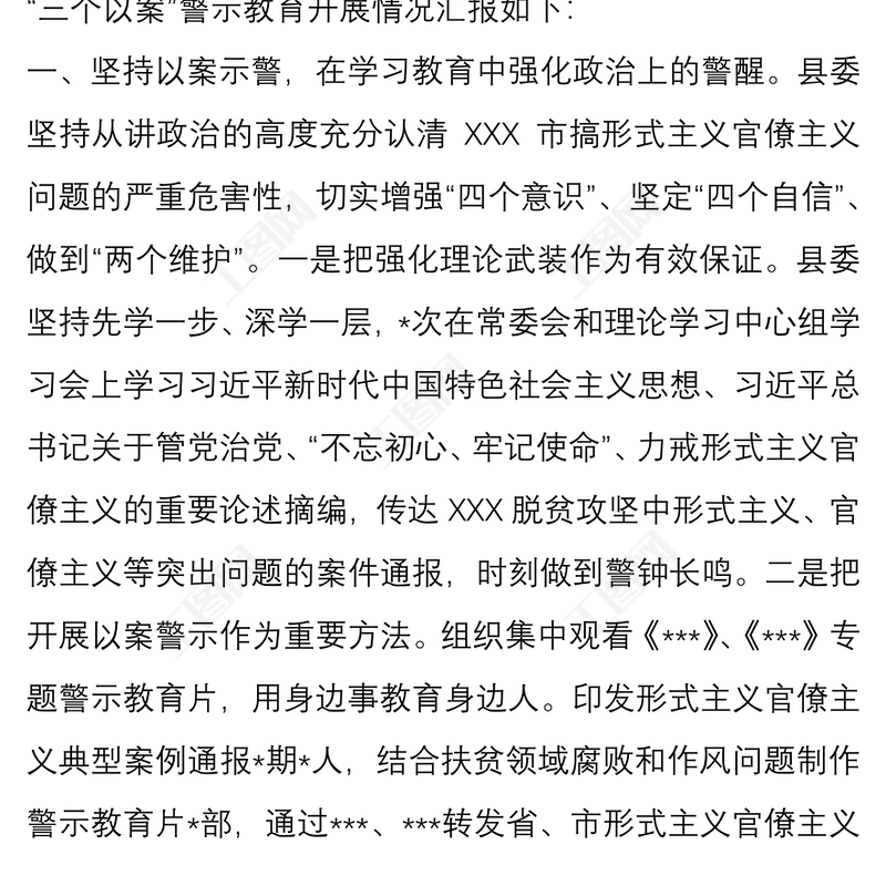 “以案示警、以案為戒、以案促改”警示教育工作開展情況總結(jié)匯報(bào)
