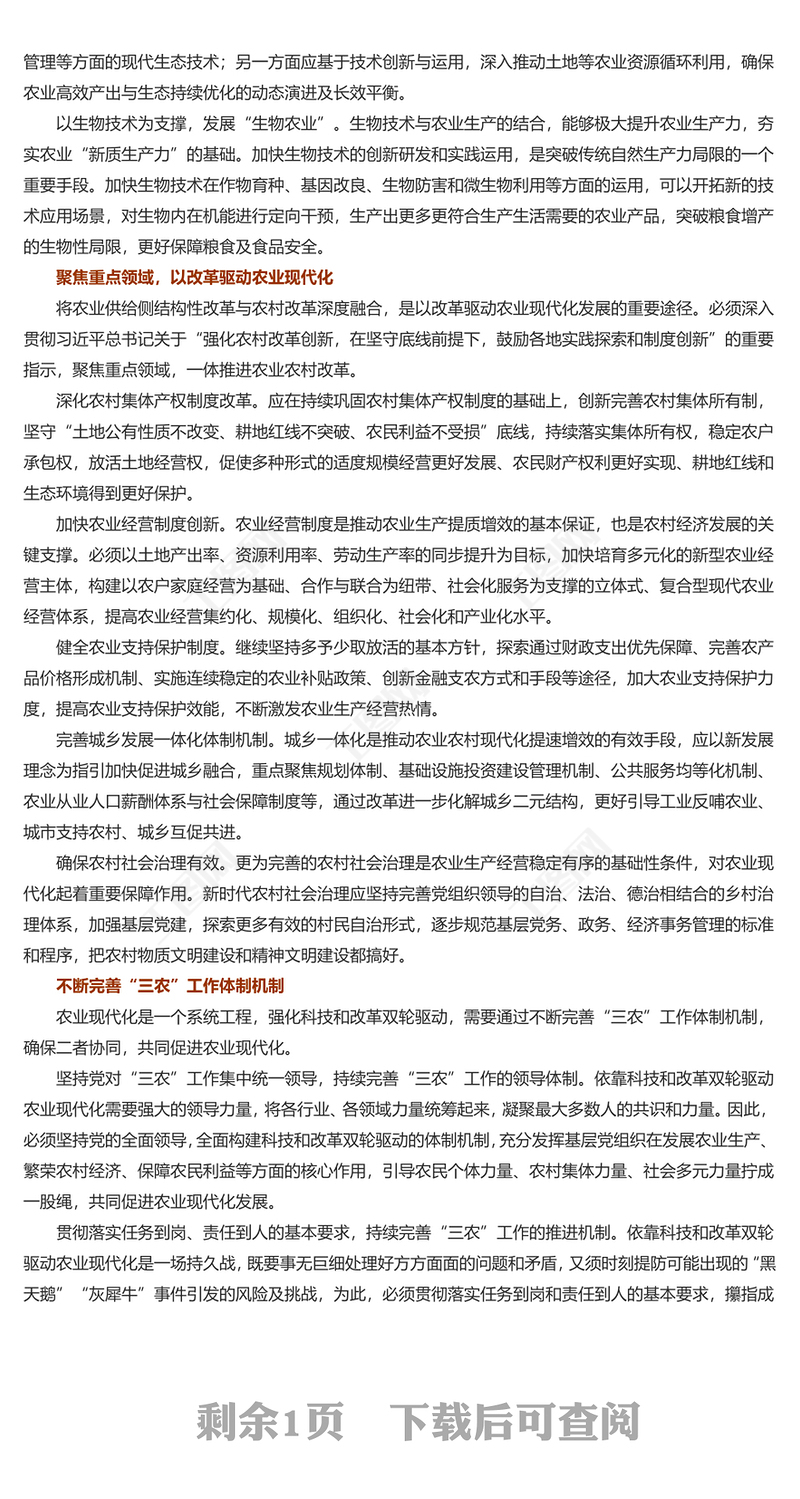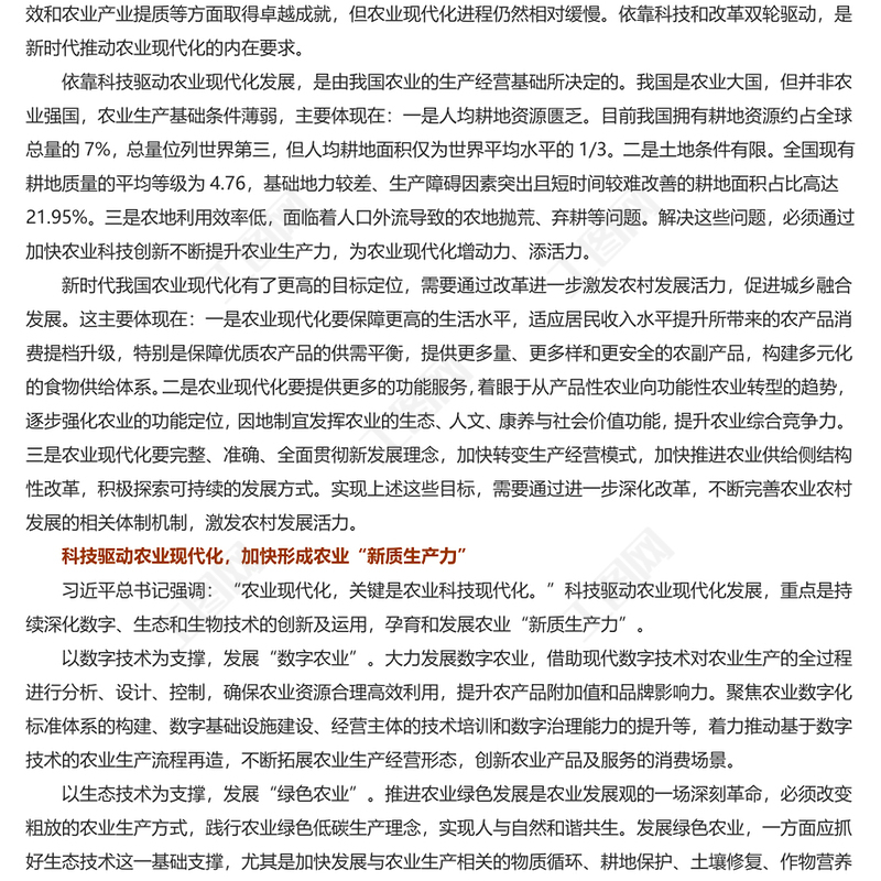 > 黨課講稿 > 依靠科技和改革雙輪驅(qū)動加快推進農(nóng)業(yè)現(xiàn)代化PPT黨建風(fēng)學(xué)習(xí)對“三農(nóng)”工作作出的重要指示課件模板(講稿).DOCX 【圖片、文字、動畫均可編輯】