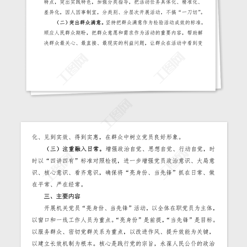 工圖網(wǎng)提供黨員干部亮身份當(dāng)先鋒活動(dòng)方案范文黨史學(xué)習(xí)教育素材供會(huì)員免費(fèi)下載。更多精彩黨課PPT素材,盡在工圖網(wǎng)。