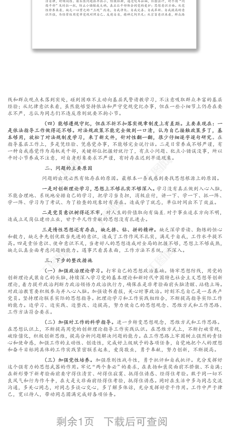 工圖網(wǎng)提供紀(jì)檢監(jiān)察干部黨史學(xué)習(xí)教育專題組織生活會(huì)個(gè)人剖析材料供會(huì)員免費(fèi)下載。更多精彩黨課PPT素材,盡在工圖網(wǎng)。