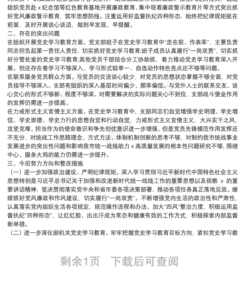 黨史學習教育專題組織生活會黨支部半年工作總結(jié)及檢視剖析材料 Array