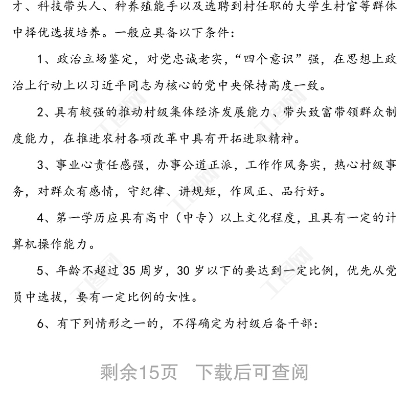 村級后備干部培養(yǎng)計劃包含