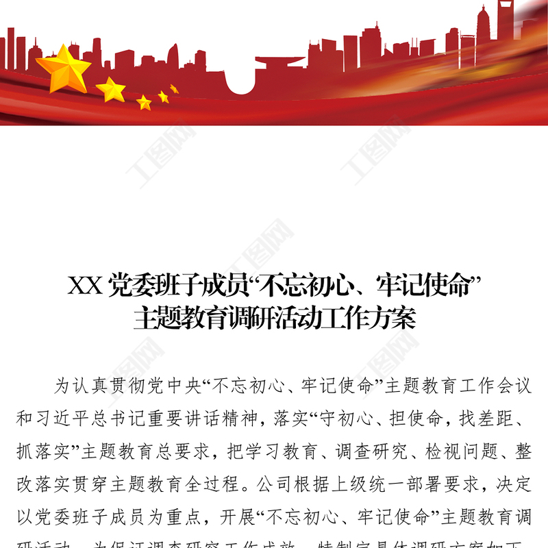 工圖網(wǎng)提供縣處級單位黨委班子成員主題教育調(diào)研活動工作方案供會員免費下載。更多精彩黨課PPT素材,盡在工圖網(wǎng)。