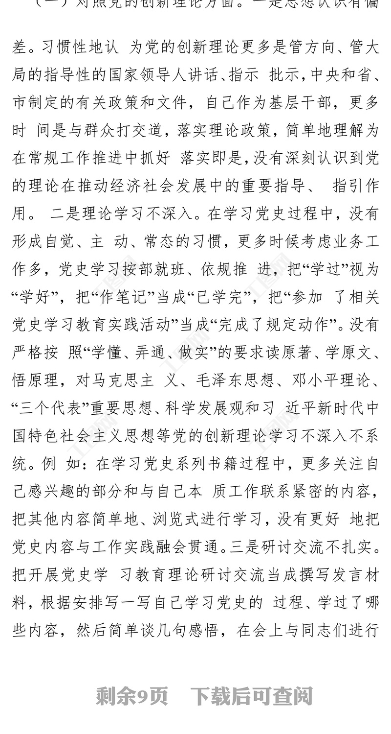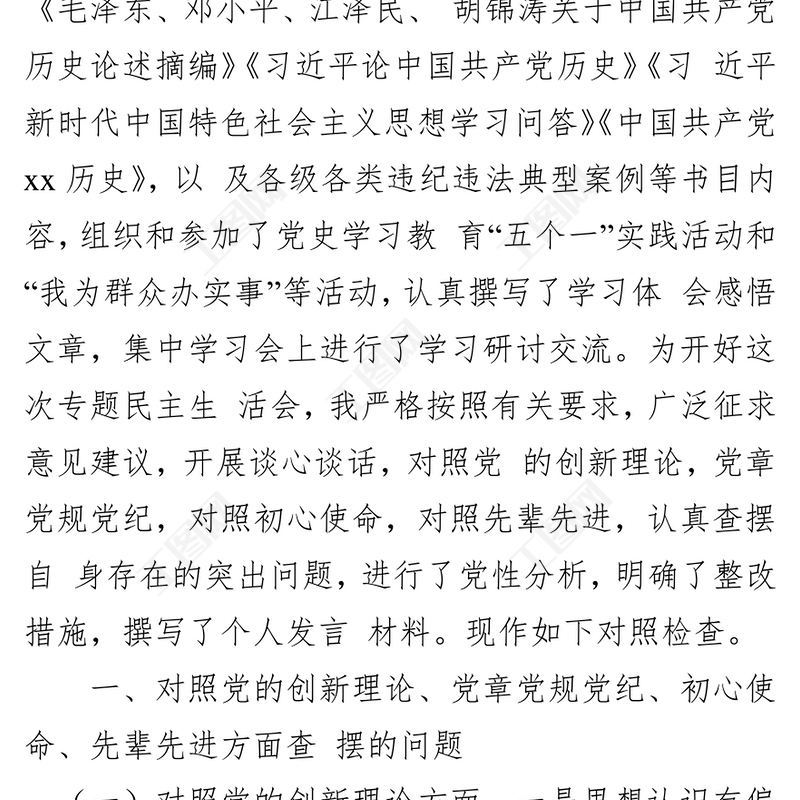 > 對(duì)照檢查 > 黨史學(xué)習(xí)教育專(zhuān)題民主生活會(huì)個(gè)人對(duì)照檢查材料.DOCX 【圖片、文字、動(dòng)畫(huà)均可編輯】