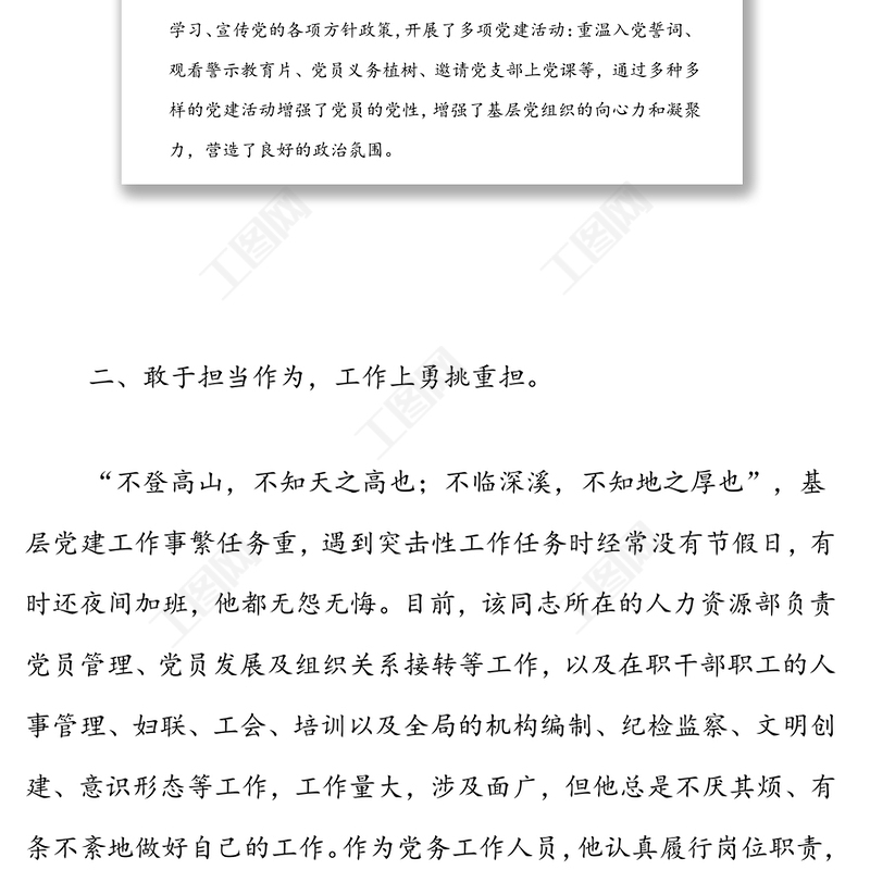 工圖網(wǎng)提供國(guó)企優(yōu)秀黨務(wù)工作者事跡材料供會(huì)員免費(fèi)下載。更多精彩黨課PPT素材,盡在工圖網(wǎng)。