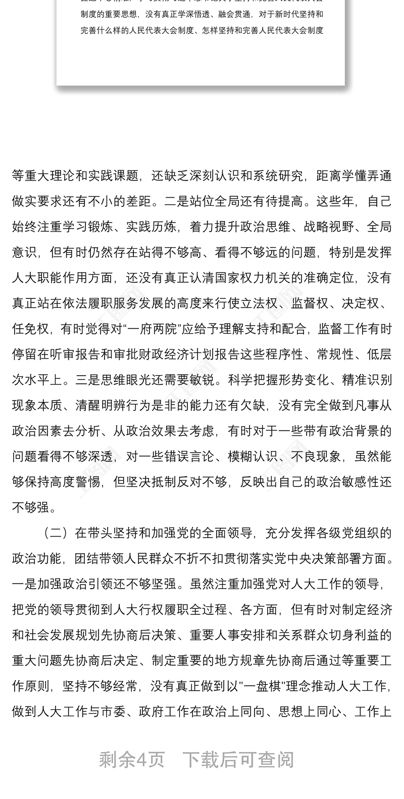 工圖網(wǎng)提供人大領(lǐng)導(dǎo)干部2020年度民主生活會(huì)“五個(gè)方面”對(duì)照檢查發(fā)言材料供會(huì)員免費(fèi)下載。更多精彩黨課PPT素材,盡在工圖網(wǎng)。