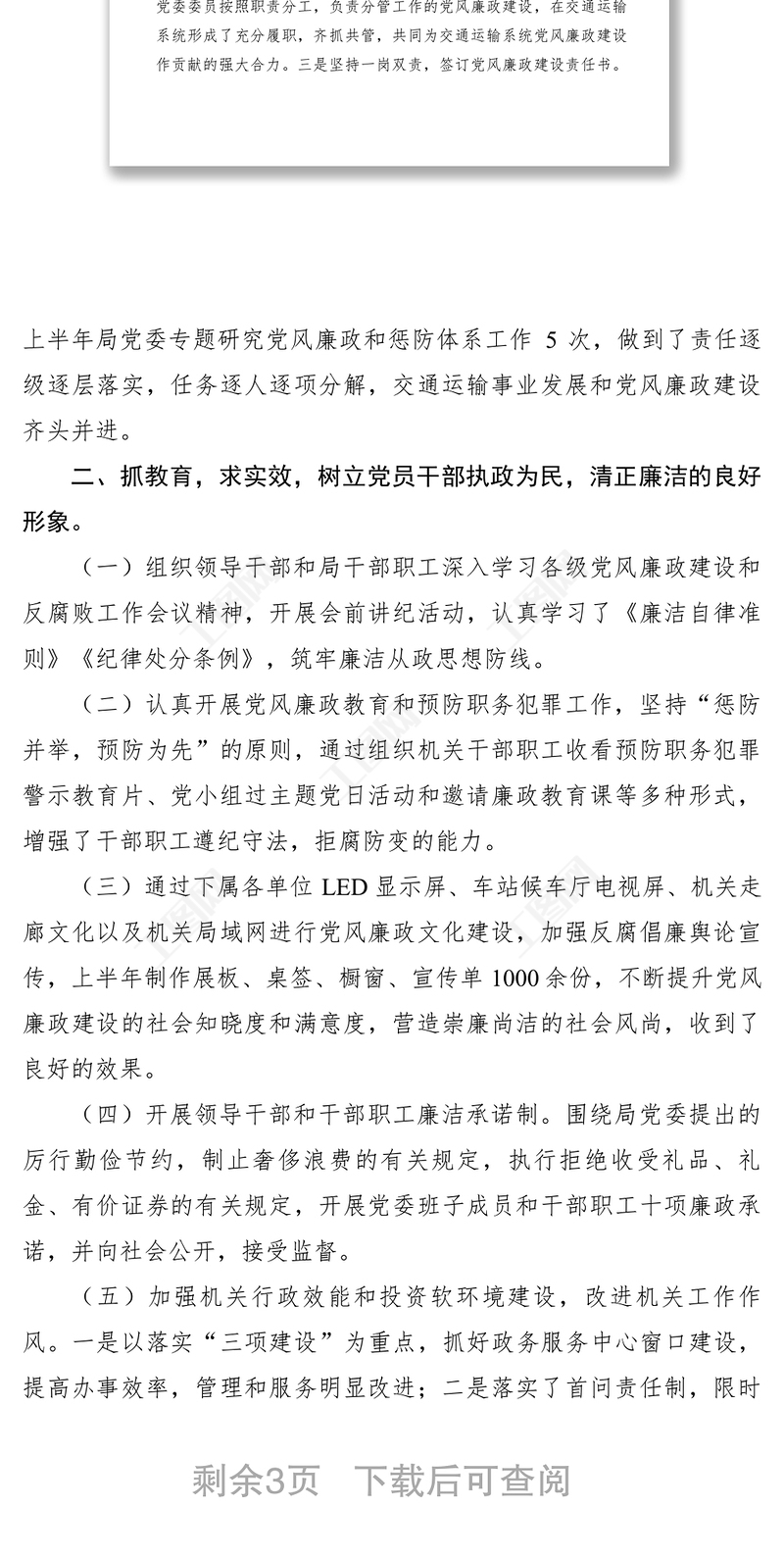 2021交通局XXXX年上半年落實(shí)黨風(fēng)廉政建設(shè)責(zé)任制和推進(jìn)懲防體系建設(shè)工作總結(jié)