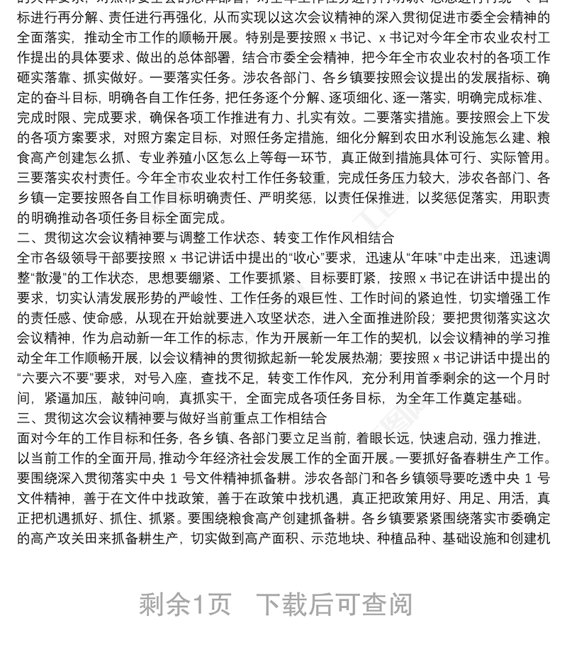 農(nóng)村工作會(huì)議暨收心會(huì)主持詞