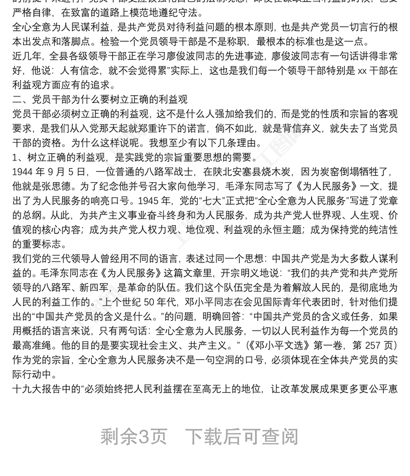 廉政黨課——黨員干部必須樹立正確的利益觀 Array