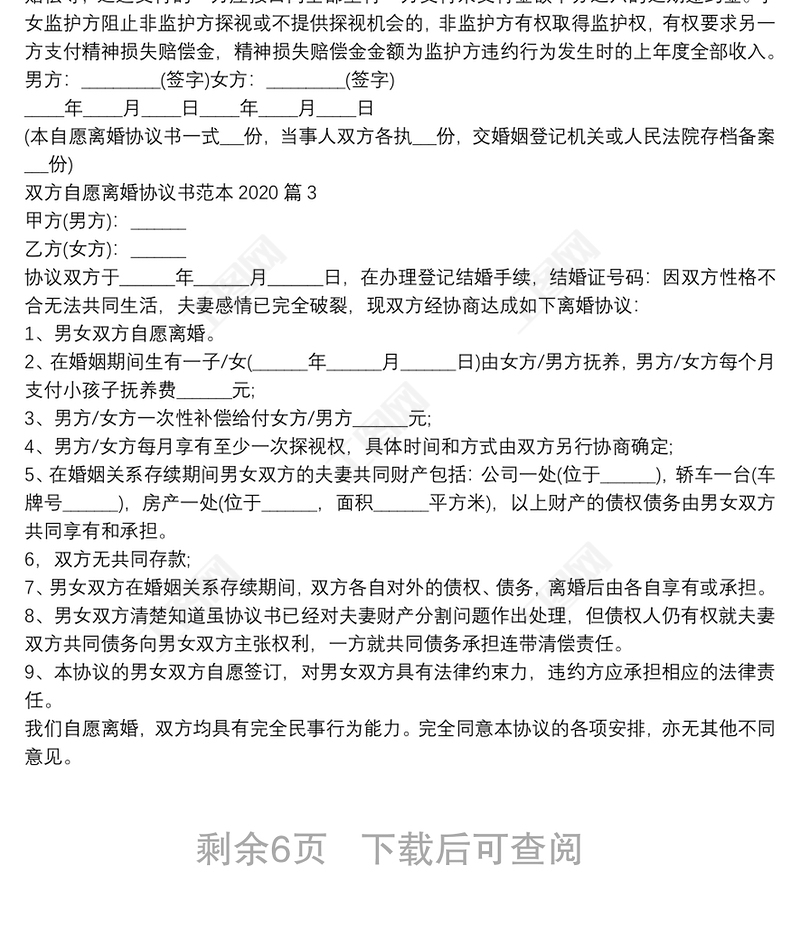 雙方自愿離婚協(xié)議書范本20209篇 Array