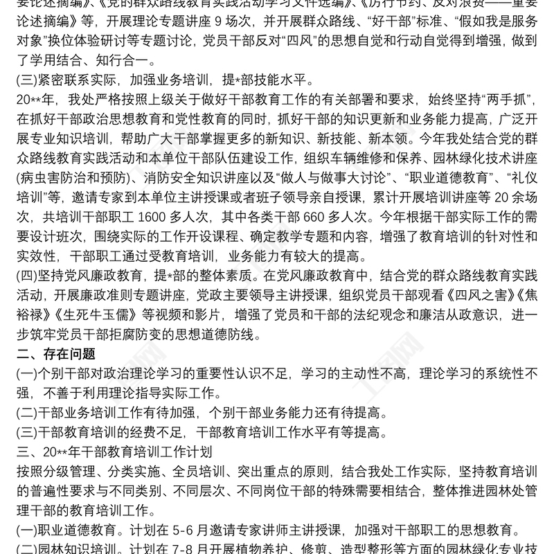 20xx年干部教育培訓(xùn)工作計(jì)劃 Array