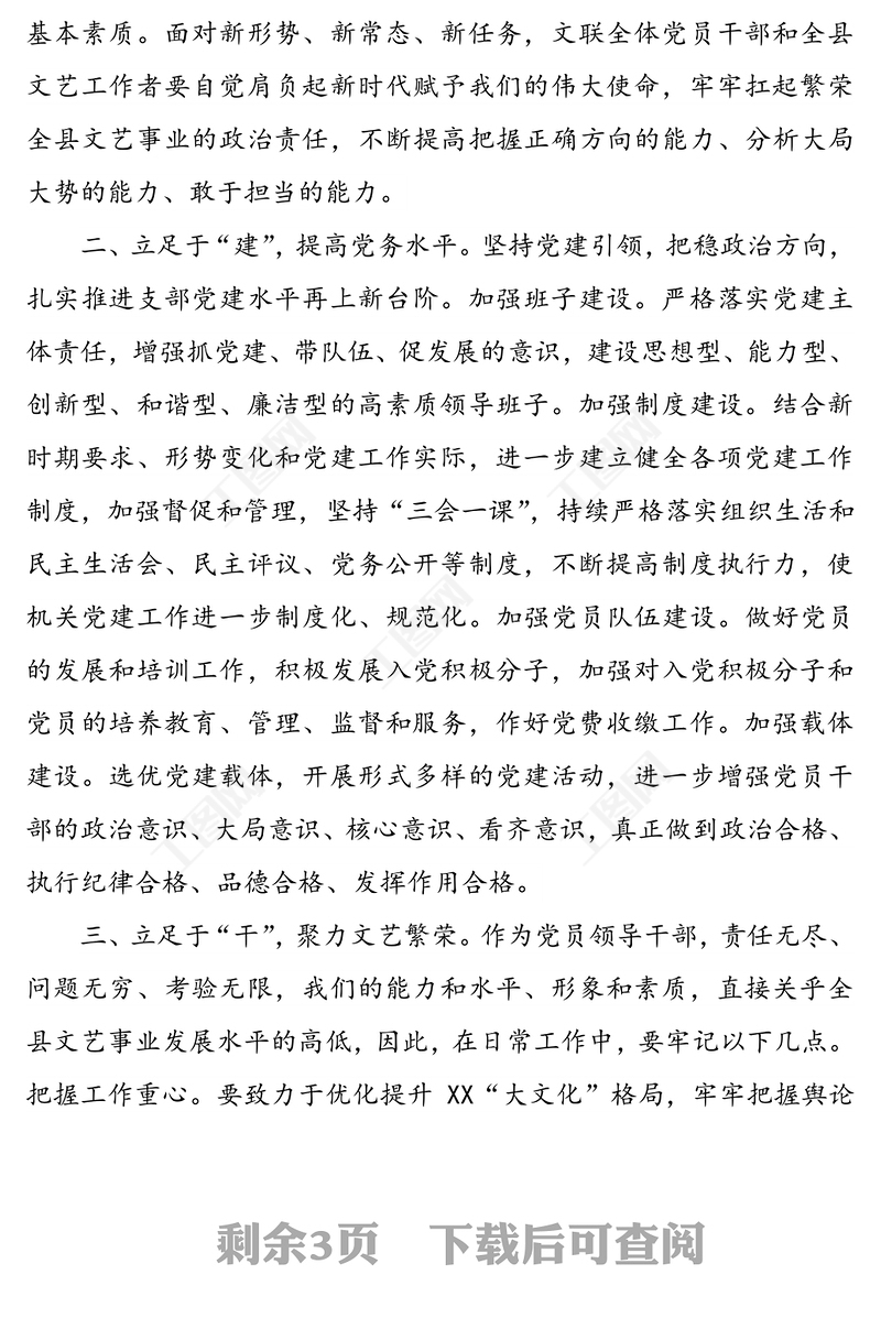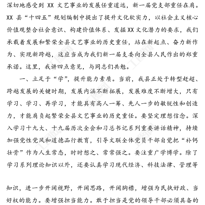 縣文聯(lián)黨支部書記在支部換屆大會上的表態(tài)發(fā)言